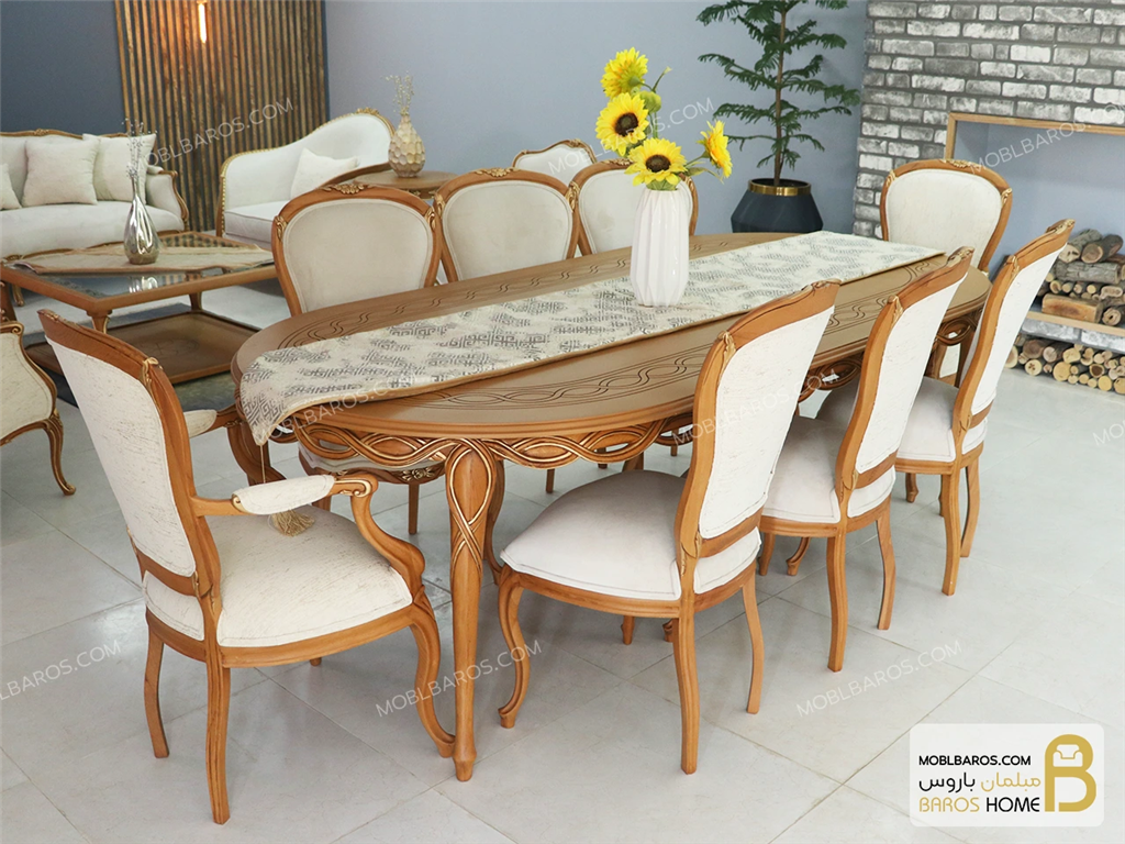 نهارخوری کلاسیک لورنزو 8 نفره مدل بیضی