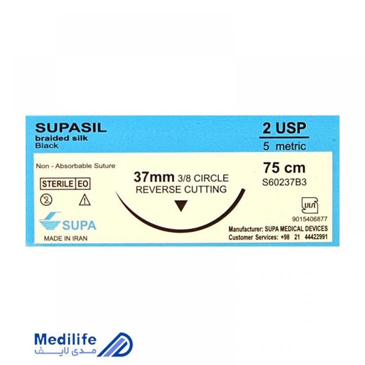 نخ جراحی سوپا سیلک 2(دو) کات سوزن 37 (بسته 36 عددی)