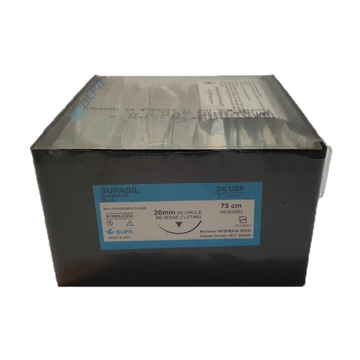 نخ بخیه سیلک سوپاسیل 75 سانتی متری - SUPA - 3/0-19