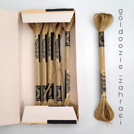 نخ گلدوزی برند دمسه زری دار رنگ طلایی کلاف 8 متری