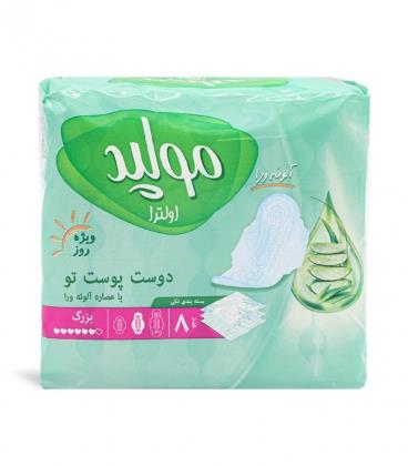 نوار بهداشتی مولپد اولترا مدل آلوئه ورا بسته 8 عددی
