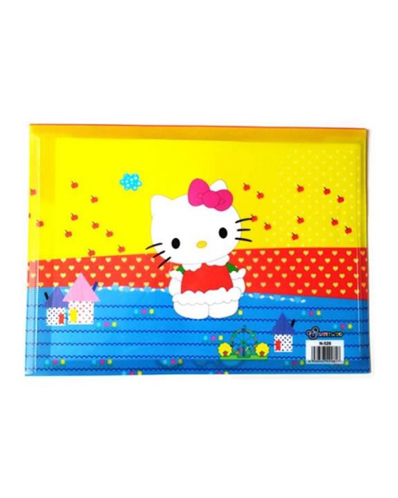پوشه دکمه دار طرح کیتی و 20 عدد کاغذ A4 + اشانتیون دو عدد چسب فانتزی