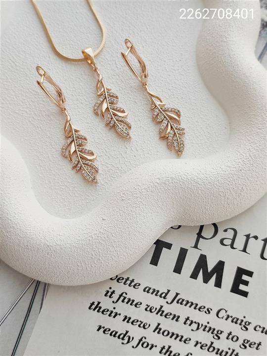 نیم ست زنانه جدید طرح برگ مارک ژوپینگ نگین دار رنگ ثابت ضد حساسیت آبکاری شده کیفیت عالی همراه با زنجیر کد 1715376