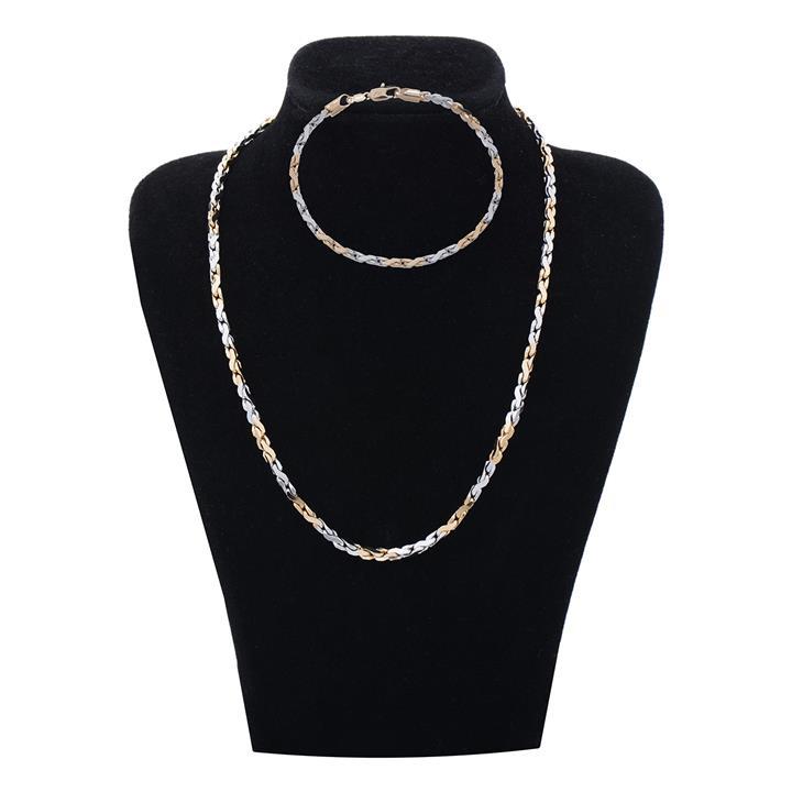 ست مردانه دستبند و گردنبند استیل آجری طلایی رنگ ثابت