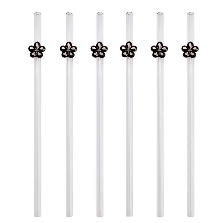 نی شربت خوری استیل طرح گل وارداتی 6 عددی