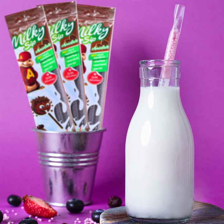 نی طعم دهنده شیر با طعم شکلات آلوین میلکی سیپ بسته 5 عددی