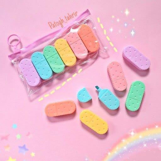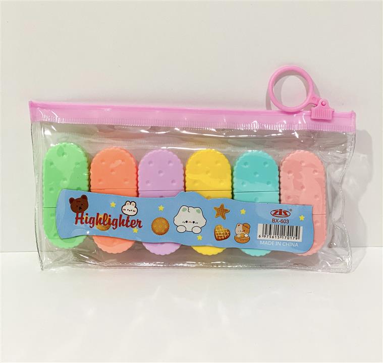 هایلایتر ۶ عددی پاستلی طرح بیسکوییت