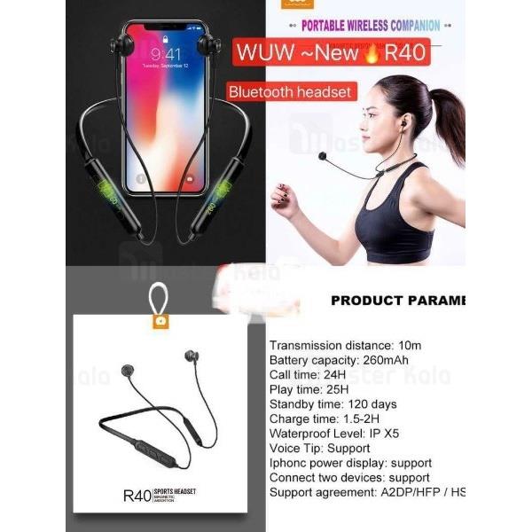 مشخصات فنی هندزفری بلوتوث گردنی مگنتی wuw R40 Sports Magnetic Headset