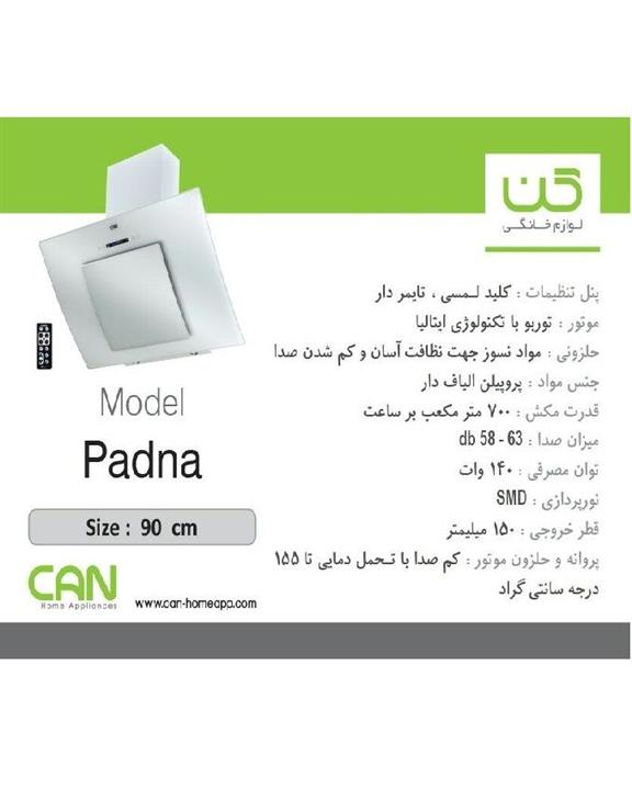 مشخصات فنی هود شومینه ای کن مدل پادنا 90 CAN Padna مشکی