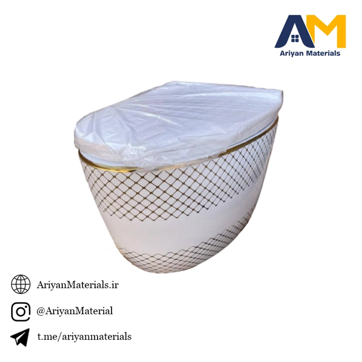 ست توالت فرنگی، توالت زمینی و کاسه روشویی لوکس سفید طلایی مدل G003