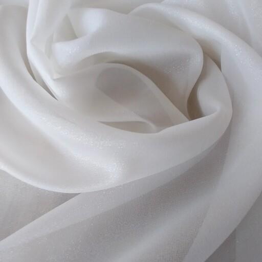 پارچه پرده عرض 3 متر مدل حریر شاین رنگ شیری