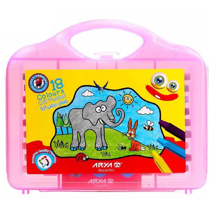 پاستل روغنی ۱۸ رنگ آریا جعبه صورتی طلقی مدل 2030