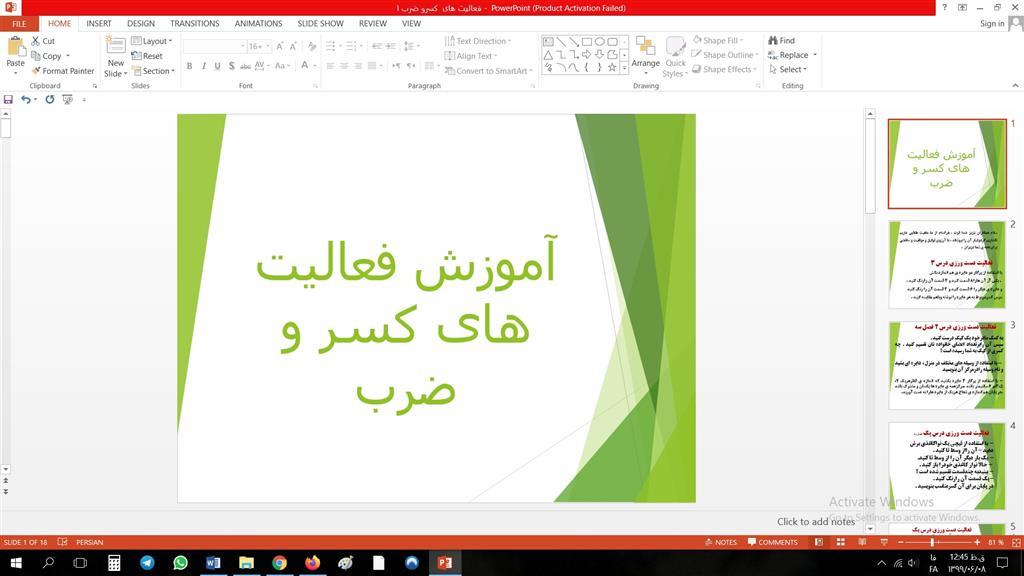 پاورپوینت آموزش فعالیت های کسر و ضرب پایه سوم دبستان