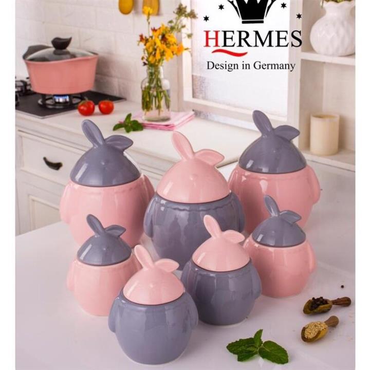 پا سماوری 7 پارچه برند هرمس مدل خرگوش طوسی صورتی