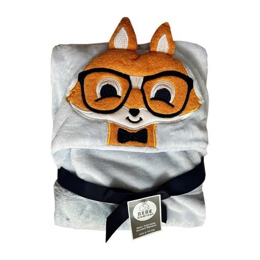 پتو نوزادببه کامفورت مدل روباه عینک دار آبی روشن کد 2197.10 سایز 100x70 سانتیمتر