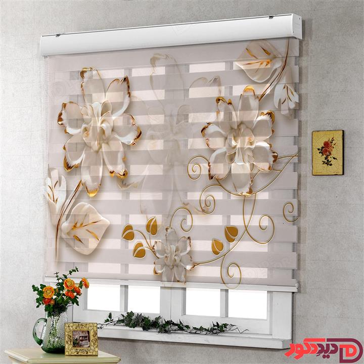 پرده زبرا تصویری گل کرم روشن کد 3DF-93