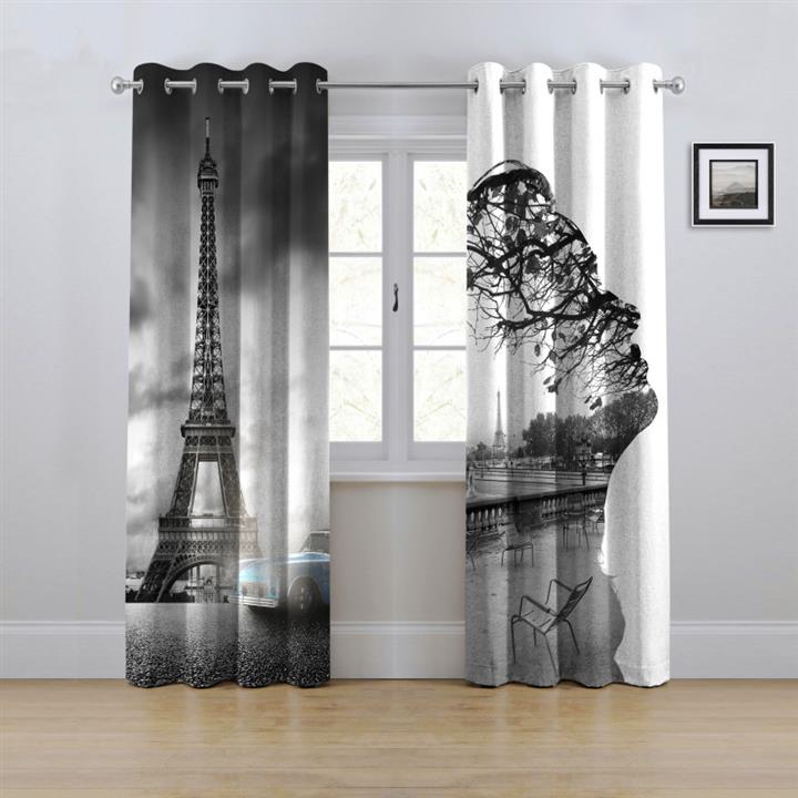 پرده مدل پانچی طرح برج ایفل سایز 280x145 سانتی متر