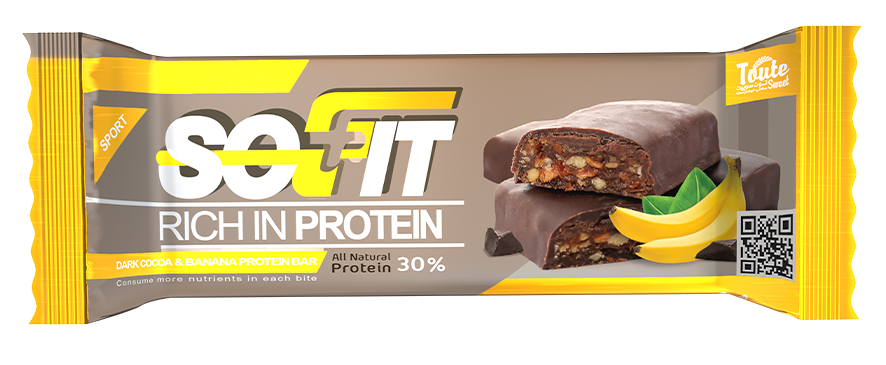 پروتئین بار موزی با روکش شکلات تلخ سوفیت