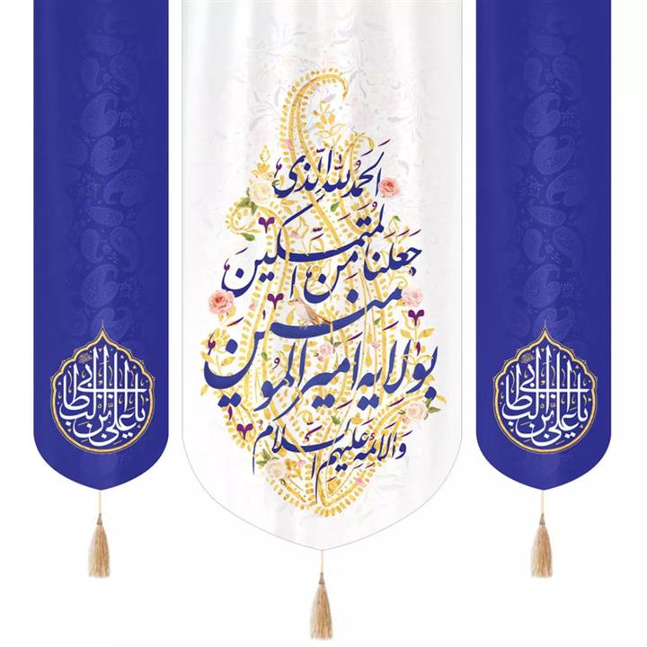 مشخصات فنی پرچم خدمتگزاران مدل کتیبه طرح الحمد لله الذی جعلنا من المتمسکین و دو طرف یا علی بن ابی طالب کد 30002953 مجموعه 3 عددی