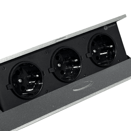 پریز برق پاپ آپ با دکمه تاچ مکانیکی رنگ سیلور 3 سوکت برق فان...