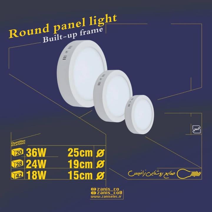 مشخصات فنی پنل 18 وات گرد روکار زانیس قطر 15 سانت یکسال