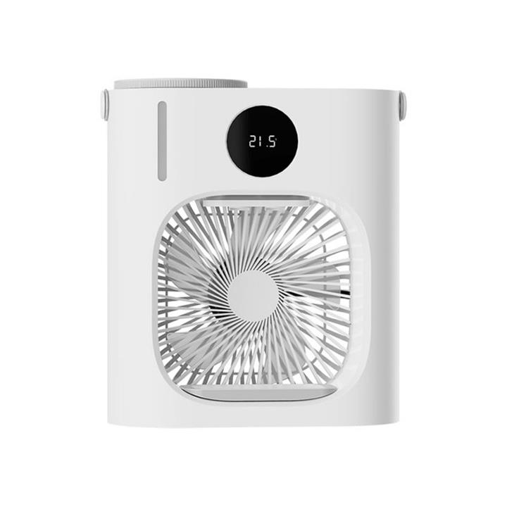 جنس: پلاستیک ABS\r\nمخزن آب: 900 میلیلیتر\r\nقدرت: 10W\r\nولتاژ : 5 ولت\r\nمیزان صدا: 45 دسیبل\r\nنمایشگر LED، حالت زمان بندی 6 حالته\r\nقابلیت تنظیم سرعت وزش باد در سه سطح\r\nمنبع تغذیه: پورت TYPE-C\r\nدارای دریچه مشاهده سطح آب\r\nدارای فن قوی با فشار مه پاش عالی\r\nدارای کلید لمسی\r\nدارای دریچه مخصوص بر روی آن برای ریختن آب در مخزن\r\nفضای مناسب برای خنک سازی از 4 متر مربع تا 8 متر مربع نسبت به گرمای محیط\r\nدارای کابل USB\r\nاستفاده از تکه های یخ برای خنک شدن سریع\r\n طول سیم: 150 سانتی متر\r\nابعاد: 265X262X113 میلی متر
