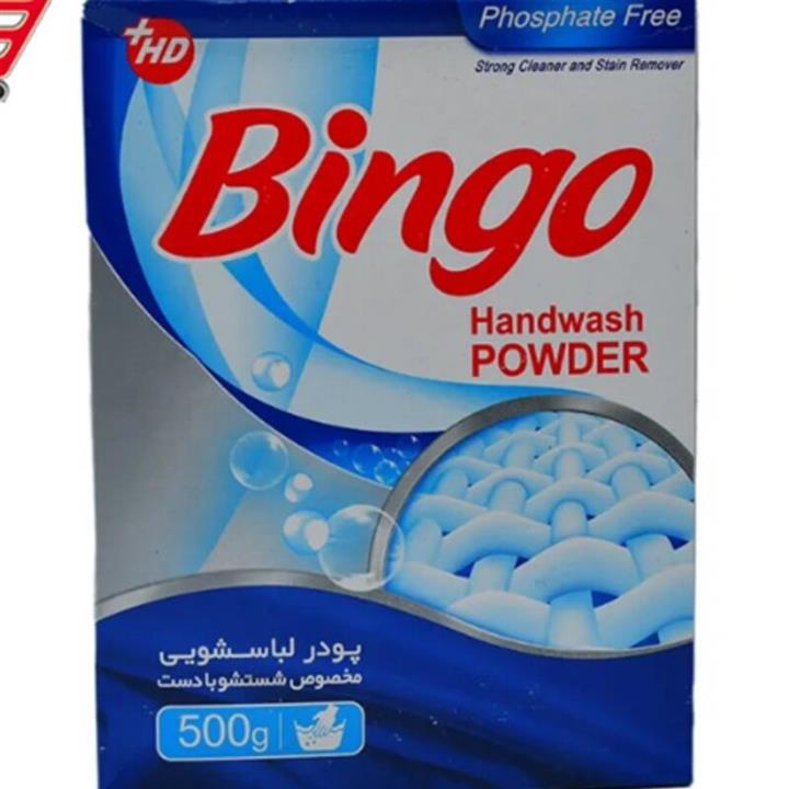 پودر لباسشویی دستی بینگو 500گرم کیفیت عالی حلال در اب سرد