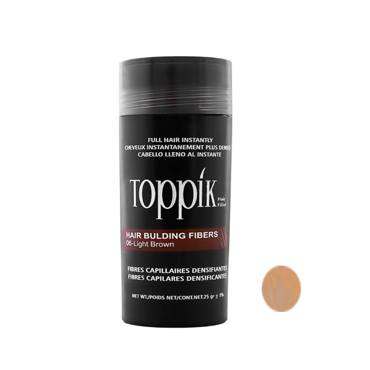 پودر پرپشت کننده مو تاپیک هیر فیلر کد 06 وزن 25 گرم رنگ قهوه ای روشن