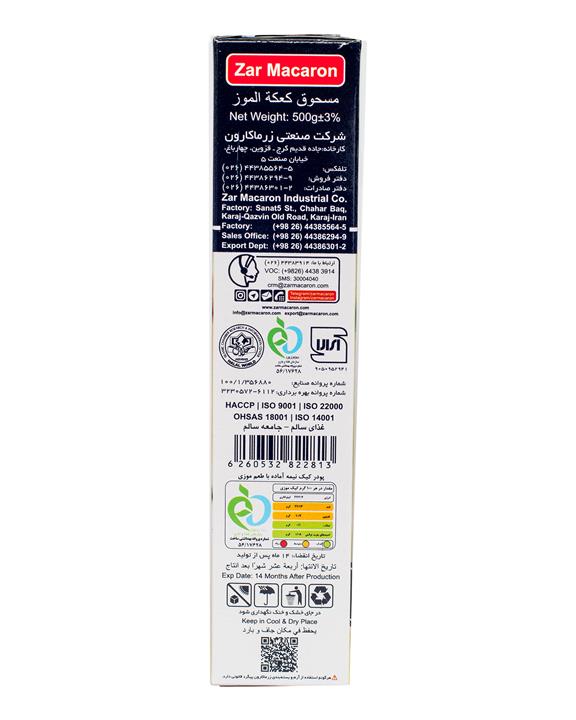 مشخصات فنی پودر کیک موزی 500 گرمی زر ماکارون
