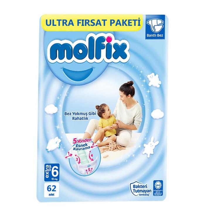 پوشک چسبی مولفیکس خارجی (molfix) سایز 6 بسته 62 عددی