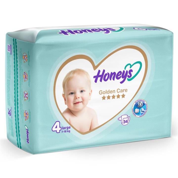 پوشک بچه سایز چهار (7-18 کیلوگرم) 34 عددی هانیز honeys