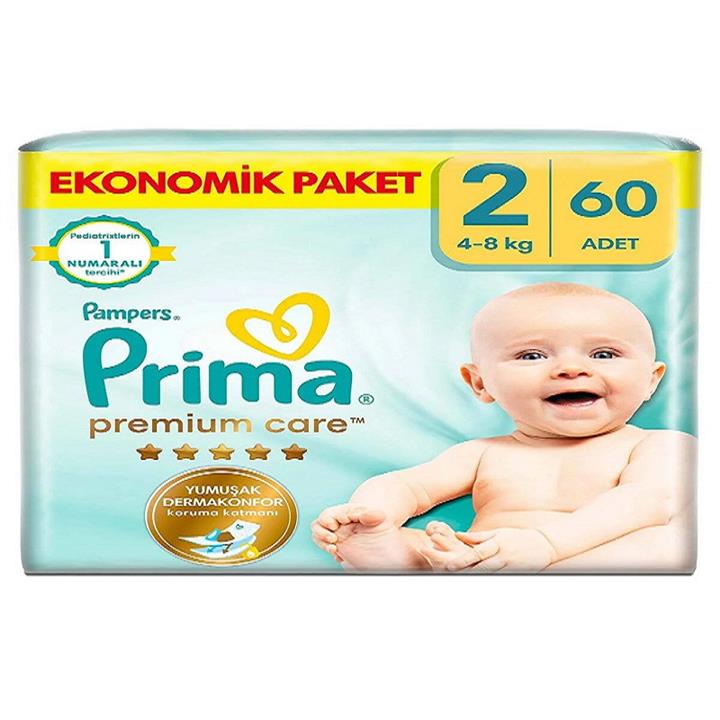 پوشک بچه پریما مدل Premium Care سایز 2 بسته 60 عددی