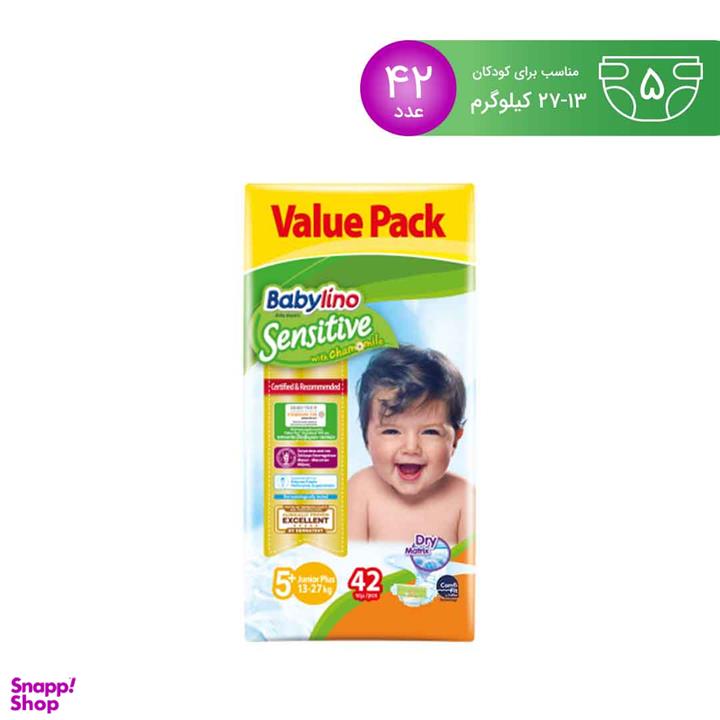 مشخصات فنی پوشک بیبی لینو سایز 5Plus مدل Value Pack بسته 42 عددی