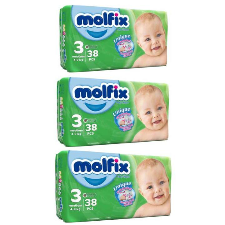 پوشک بچه مولفیکس (Molfix) سایز 3 بسته 38 عددی