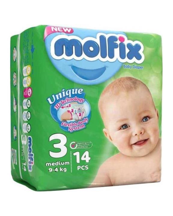 پوشک نوزادی سه بعدی مولفیکس (Molfix) سایز 3 بسته 14 عددی