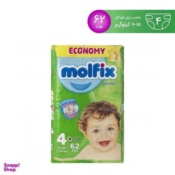پوشک کودک اقتصادی مولفیکس سایز 4 بسته 62 عددی