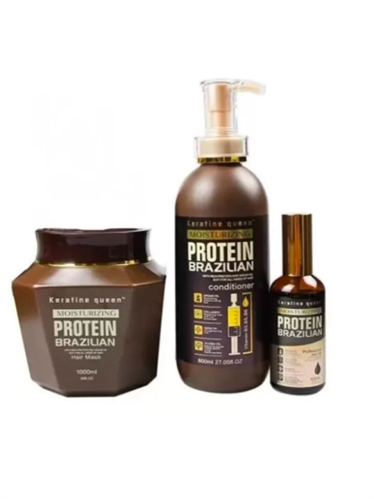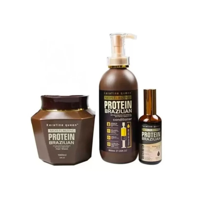 پک شامپو 800 میل و ماسک مو 1000 میل و روغن آرگان 100 میل فری سولفات از برند با کیفیت پروتئین کویین برزیلین