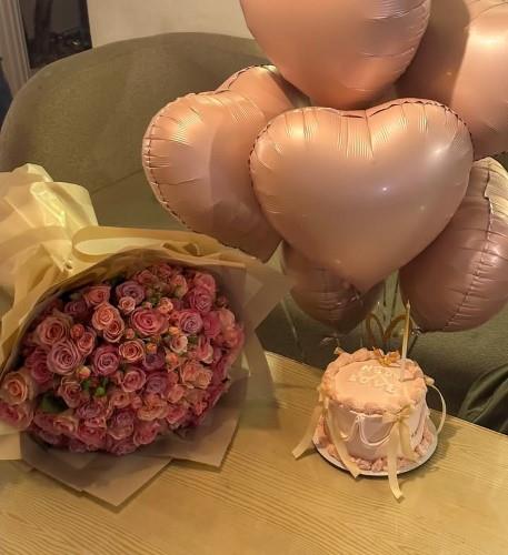 پک هدیه و کیک تولد با گل دختر 1 ساله