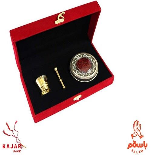 پک و جعبه کادوئی زعفران - مخمل خاتم 5گرم وهاون گلدانی
