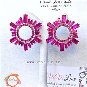 گوشواره مجلسی وارادتی زارا ZARA با نگین های سرخابی رنگ پرکار کیفیت عالی