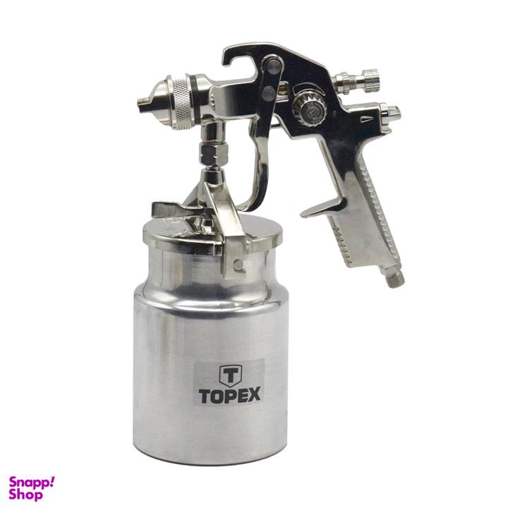 - پیستوله رنگ پاش تاپکس \n- دارای نازل سایز 2.5 میلی متر \n- مناسب برای رنگکاری چوب، نقاشی ساختمان، چسب پاشی و..\n- جلوگیری از مصرف بی رویه رنگ و باد با مکانیزم HVLP توانایی تنظیم حجم، عرض و شدت پاشش توسط کابر\n- مجهز به مخزن رنگ فلزی بزرگ با ظرفیت 1000 میلی لیتر\n- حداکثر فشار : 5 بار - 72 پی سی آی