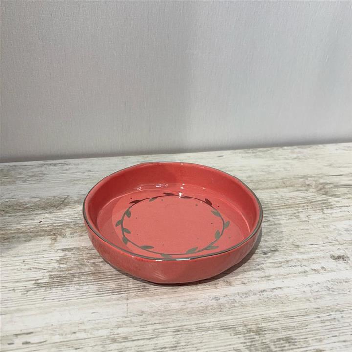 پیشدستی سرامیکی گرد دستساز رنگ صورتی طرحدار