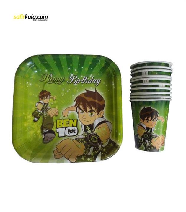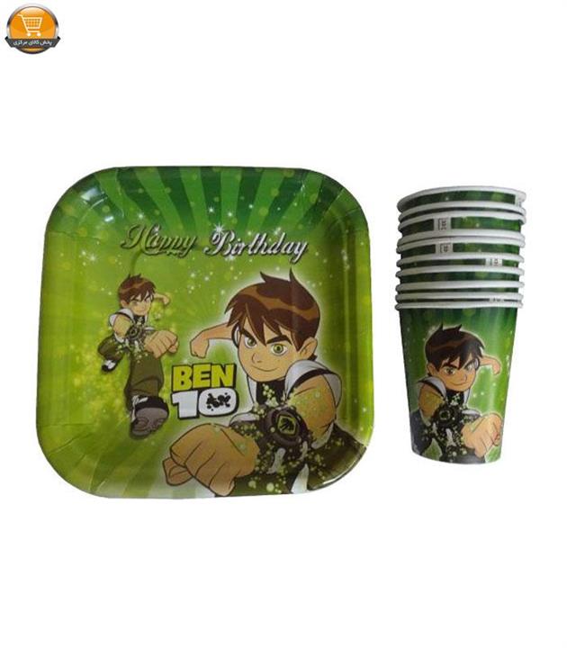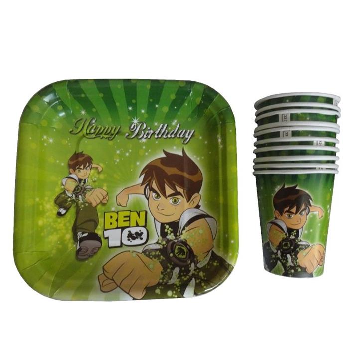 پیش دستی و لیوان یکبار مصرف مستر تم طرح بن تن مجموعه ۲۰ عددی