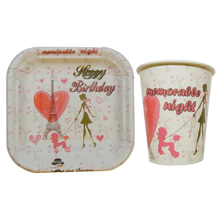 مشخصات فنی پیش دستی و لیوان یکبار مصرف مستر تم طرح پاریس بسته 40 عددی