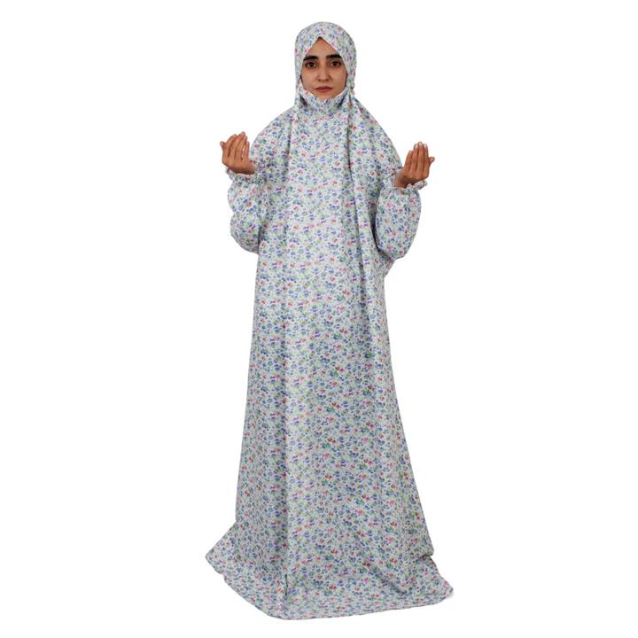 چادر نماز گلدار نخی جلوبسته آستین دار قد 170