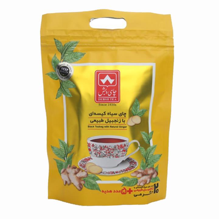 چای سیاه کیسه ای با زنجبیل طبیعی چای دبش بسته 25 عددی