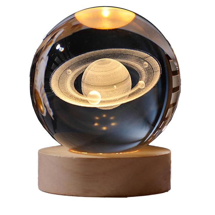مشخصات فنی چراغ خواب مدل گوی شیشه ای 3D طرح سیاره زحل