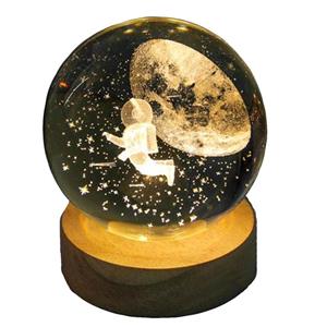 چراغ خواب گوی کریستالی با پایه چوبی طرح فضانورد و ماه