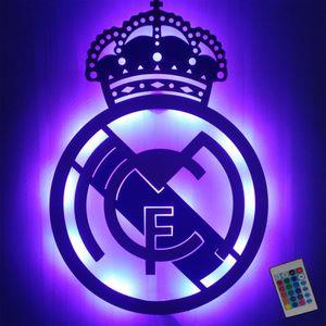 چراغ دیواری تیم کهکشانی رئال مادرید که طرفداران بسیار زیادی دارد این چراغ دیواری زیبایی بخش محیط اتاق و منزل هواداران دو آتیشه آن میباشد و دارای 16 رنگ منفاوت است که می توانید با کنترل از راه دور در رنگ های مختلف تنطیم کنید و یا در 4 حالت رقص نوری جذاب قرار دهید . شما میتوانید این شب خواب را در فضای گیمینگ و محل کار استفاده کنید \r\nهمچنین برای نصب می توانید به وسیله یک میخ و محل نصب مخصوص پشت تابلو به راحتی این چراغ دیواری را روی دیوار نصب کنید