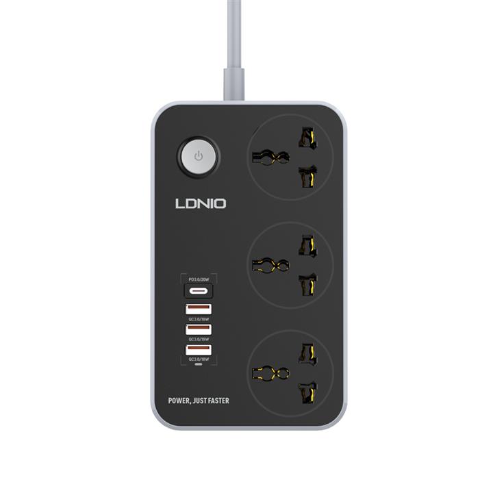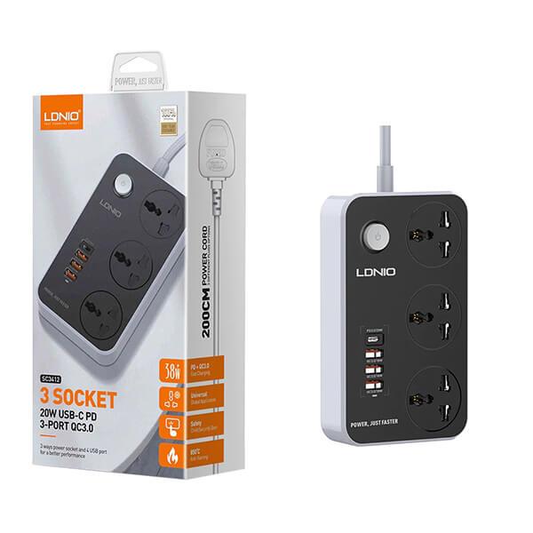 سه راهی برق LDNIO مدل SC3412خروجی USB-A و USB-C فست شارژ